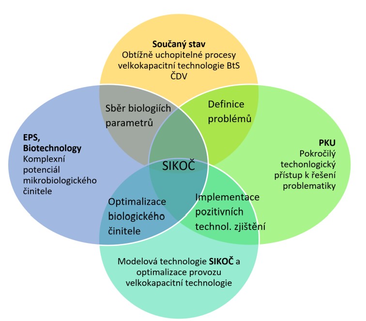 Cílem projektu je získávání nových znalostí prostřednictvím výzkumu a vývoje, nezbytných k nalezení a realizaci optimalizačních řešení pro biotechnologický systém čištění důlních vod (BtS ČDV) v reálném čase a se zlomkovou investicí. BtS ČDV je svým rozsahem a plánovanou kapacitou v evropském měřítku unikátní systém sloužící k čištění vod čerpaných v rámci odvodňování mostecké pánve v rámci těžby hnědého uhlí. Provozní zkušenosti se zařízením podobného rozsahu nejsou dostupné. Po uvedení do provozu bude zařízení vyžadovat optimalizační kroky na straně režimu provozu (určení klíčových parametrů), i na straně konstrukce (úrovně hladin, mocnosti substrátu a jeho druh apod.). Hledání optimálního nastavení za provozu zařízení v plném měřítku by bylo jednak zdlouhavé (doba pro provedení změny, vysoká setrvačnost systému), a jednak nákladné. Po stránce realizace úprav i po stránce potřebného monitoringu změn. Efektivní platformou pro návrh optimálních provozních parametrů bude simulační komplex čištění vod (SIKOČ) - modelový analog čistírny ve zmenšeném měřítku, který je předmětem tohoto předkládaného projektu. Provozní stavy a patřičné optimalizační kroky bude pomocí SIKOČ možno simulovat v reálných podmínkách řádově rychleji a se zlomkovými finančními náklady. Výsledná technologická řešení povedou jednak ke zvýšení účinnosti čištění důlních vod, která se projeví zvýšením jakosti vody vypouštěné do řeky Bíliny (přínos ekologický) a tak výrazným snížením nákladů potřebných na optimalizaci provozu BtS ČDV (přínos ekonomický).